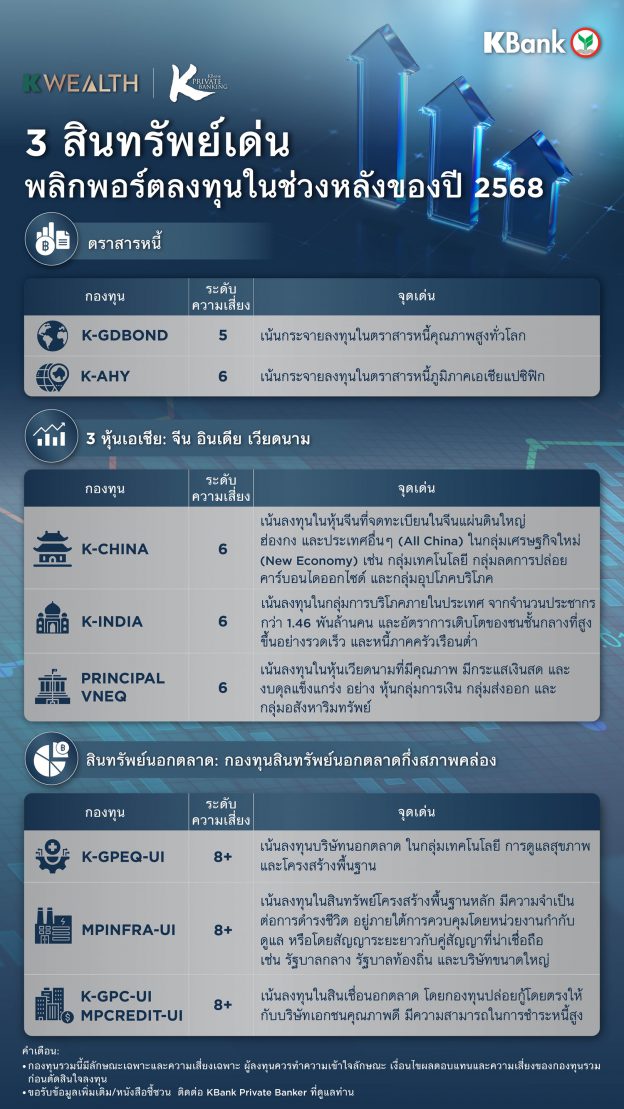 KBank Private Banking แนะจับตา 3 สินทรัพย์เด่น พลิกพอร์ตลงทุนในช่วงหลังของปี 2568