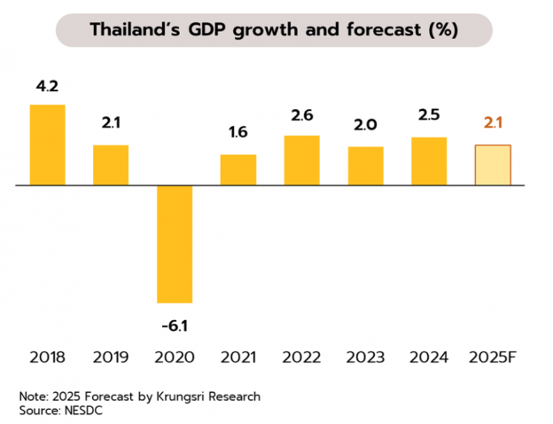 เศรษฐกิจไทยครึ่งแรกของปีโต 3% วิจัยกรุงศรียังคงประมาณการ GDP ปี 2568 ขยายตัวที่ 2.1%