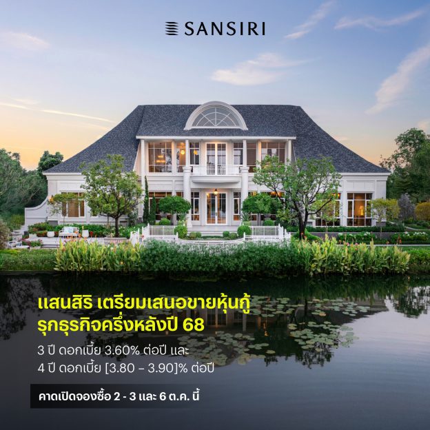 แสนสิริ เตรียมออกหุ้นกู้ชุดใหม่ ชูดอกเบี้ยระหว่าง [3.60–3.90]% ต่อปี คาดเสนอขาย 2 – 3 และ 6 ตุลานี้