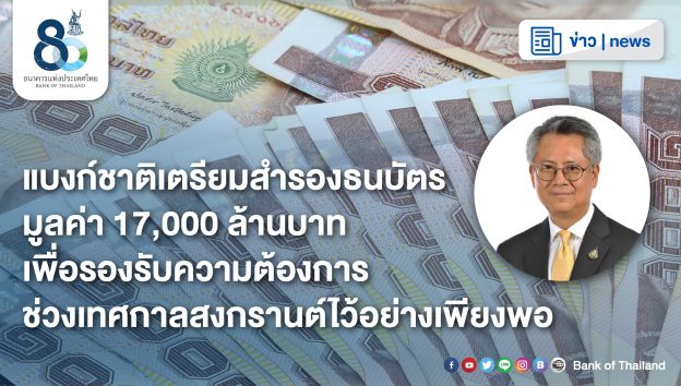 ธปท. สำรองธนบัตร 17,000 ล้านบาท รองรับประชาชนใช้จ่ายช่วงสงกรานต์ปี 65