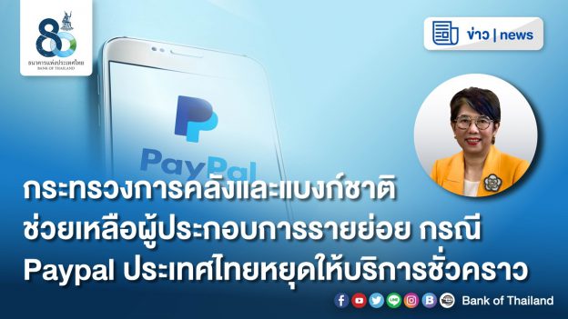 ก.คลัง และ ธปท. ช่วยเหลือผู้ประกอบการรายย่อยที่ได้รับผลกระทบจาก PayPal ประเทศไทย หยุดให้บริการชั่วคราว