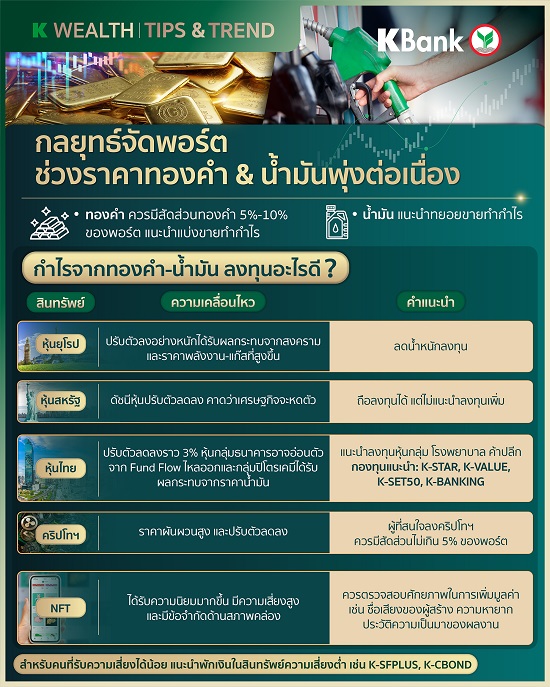 K WEALTH แนะทยอยขายทองคำ-น้ำมันทำกำไร