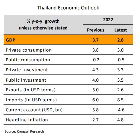 วิจัยกรุงศรี เผยวิกฤตยูเครนกระทบเศรษฐกิจไทยปีนี้เติบโตชะลอลง จากเดิมประมาณการ 3.7% เป็น 2.8%