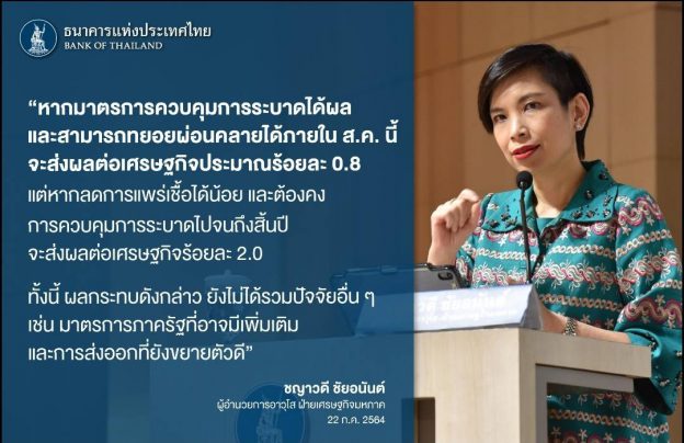 ธปท. ชี้ โควิดรอบนี้ ฉุดกิจกรรมทางเศรษฐกิจติดลบ -0.8 ถึง -2% ต่อจีดีพี