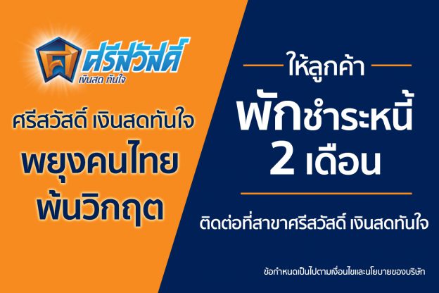 ‘ศรีสวัสดิ์’ พักชำระเงินต้นและดอกเบี้ย 2 เดือน พยุงคนไทยพ้นวิกฤต ช่วยลูกค้าที่ได้รับผลกระทบโควิด