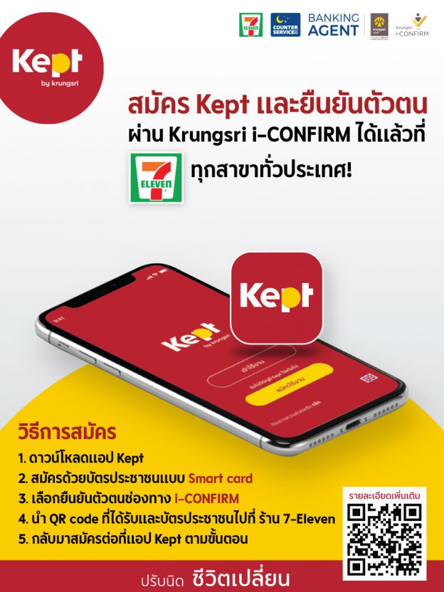 Kept แอปเก็บเงินแนวใหม่ สมัครง่าย สะดวกกว่าเดิม Krungsri i-Confirm ที่ 7-Eleven ทุกสาขาทั่วประเทศ