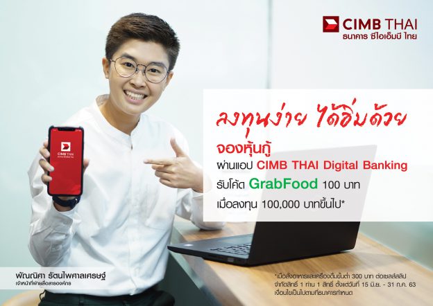 ซีไอเอ็มบี ไทย เปิดให้จองซื้อหุ้นกู้ แบบง่ายๆ ผ่านแอปพลิเคชัน ได้ส่วนลด GrabFood 100 บาท