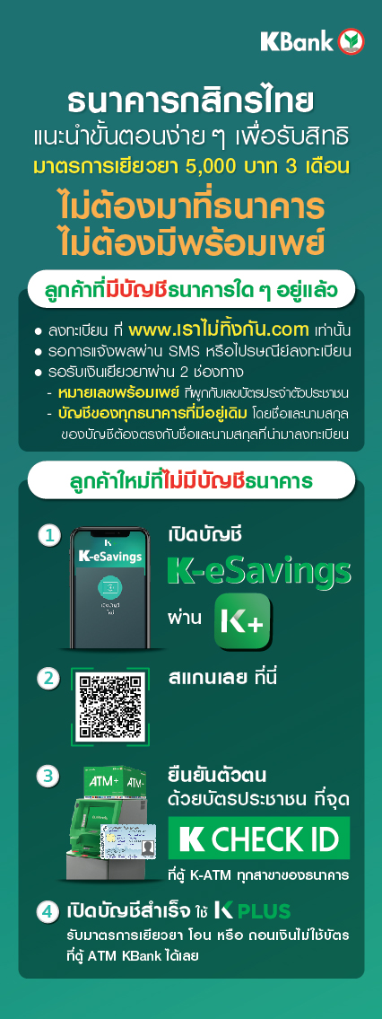 กสิกรไทย แนะนำลงทะเบียนรับเงินเยียวยา 5 พัน ทำได้ที่บ้านง่ายๆ…ไม่ต้องมาธนาคาร ลดเสี่ยงติดโควิด-19