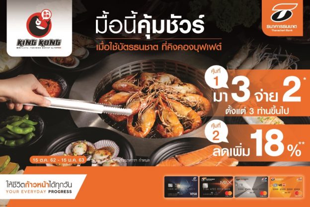 ลูกค้าบัตรธนชาต อิ่มมื้อนี้คุ้มชัวร์ 2 ต่อ ที่ร้านคิงคอง (King Kong) ทุกสาขา ##