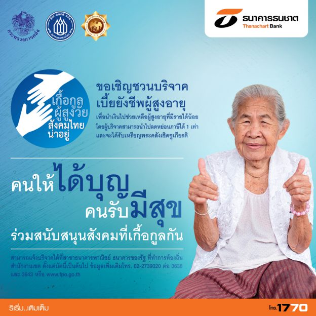 ธนชาตร่วมเป็นช่องทางรับแจ้งบริจาคเบี้ยยังชีพผู้สูงอายุ กับโครงการ “เกื้อกูลผู้สูงวัย สังคมไทยน่าอยู่”