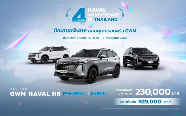 GWM HAVAL H6 ฉลองความสำเร็จครบรอบ 4 ปี จัดแคมเปญสุดยิ่งใหญ่ มอบ 3 ข้อเสนอพิเศษ ลูกค้าเก่ารับส่วนลดเพิ่ม 20,000 บาท