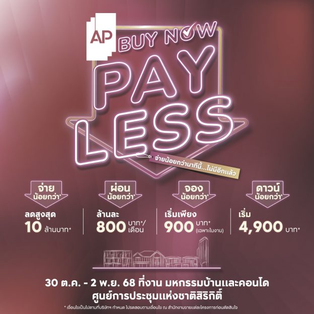 เอพี ไทยแลนด์ คัดสรร 169 โครงการคุณภาพ พร้อมข้อเสนอพิเศษ AP BUY NOW, PAY LESS ลดสูงสุด 10 ล้านบาท*ในงานมหกรรมบ้านและคอนโดฯ 30 ต.ค. – 2 พ.ย. 68 ณ ศูนย์การประชุมแห่งชาติสิริกิติ์
