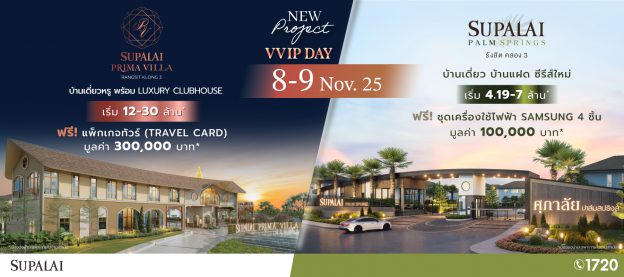 ศุภาลัย ยกระดับการอยู่อาศัยสู่มาตรฐานใหม่ ส่งซีรีส์ “Romantic Charm” ครั้งแรก! บนทำเลรังสิต–คลอง 3 กับ 2 โครงการบ้านเดี่ยวคุณภาพ พรีมา วิลล่า และ ปาล์มสปริงส์ พร้อมโปรสุดเอ็กซ์คลูซีฟในงาน VVIP DAY เท่านั้น!