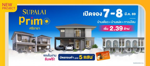 ศุภาลัย เปิดตัว “พรีโม่ ศรีราชา” เผยโฉม CLOUD Series ดีไซน์ใหม่ ตอบโจทย์การใช้ชีวิตของคนรุ่นใหม่ ครบครันทั้งบ้านเดี่ยว บ้านแฝด และทาวน์โฮม ราคาเริ่มต้น 2.39 ล้านบาท* เตรียมเปิดจองครั้งแรกวันที่ 7–8 มีนาคม 2569