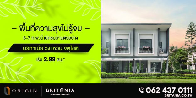 เปิดชม “บริทาเนีย วงแหวน จตุโชติ” ทาวน์โฮม&บ้านแนวคิดใหม่ ใกล้รถไฟฟ้า ใกล้ 2 ทางด่วน ราคาพิเศษ เริ่ม 2.99 ลบ.*