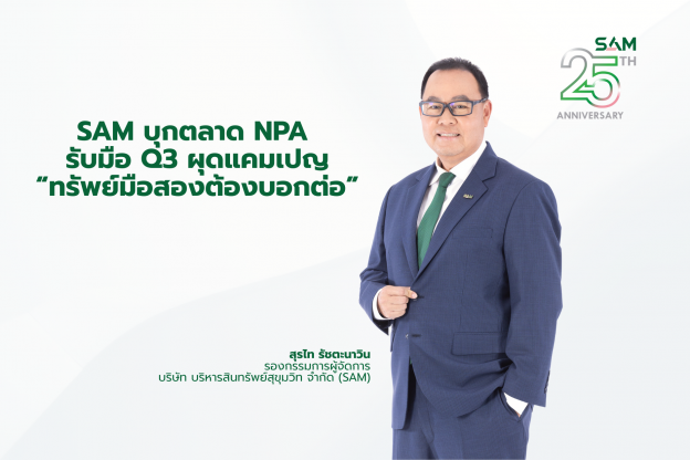 SAM บุกตลาด NPA ไตรมาส 3 ผุดแคมเปญแรง “ทรัพย์มือสองต้องบอกต่อ” เปิดพอร์ต NPA เกือบ 5 พันรายการ มูลค่ากว่า 2 หมื่นล้านทั่วประเทศ จูงใจคนไทยสมัครเป็นผู้แนะนำทรัพย์ รับค่าตอบแทนสูงถึง 3 ลบ. ต่อ 1 รายการ
