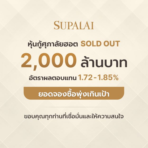 ศุภาลัยฟีเวอร์! หุ้นกู้ 2,000 ล้านบาท SOLD OUT ผู้ลงทุนสถาบันให้ความสนใจคับคั่ง