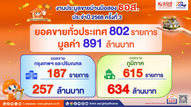 ธอส. ช่วยคนไทยมีบ้าน ลูกค้าประมูลทรัพย์มือสองทั่วประเทศได้กว่า 800 รายการ มูลค่ารวม 891 ล้านบาท