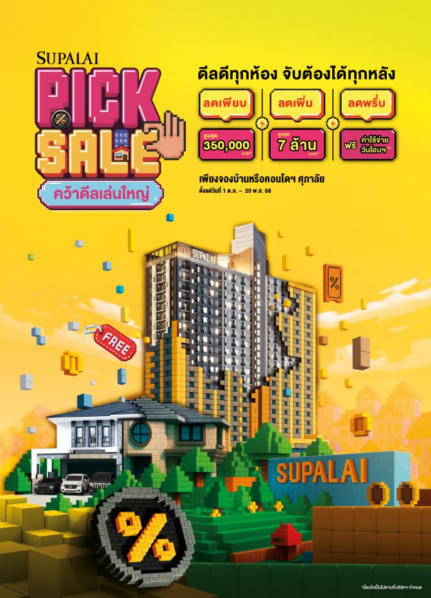 ศุภาลัย ระเบิดโปรแรงโค้งสุดท้ายปี “SUPALAI PICK SALE คว้าดีลเล่นใหญ่” ลดสูงสุด 7 ล้านบาท! การันตีดีลดีทุกห้อง คุ้มที่สุดแห่งปี