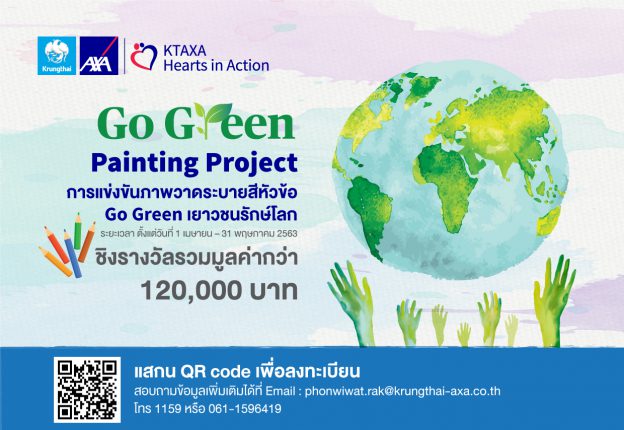 กรุงไทย-แอกซ่า ประกันชีวิต… ขอเชิญน้องๆ ร่วมประกวดวาดภาพระบายสีในหัวข้อ “Go Green เยาวชนรักษ์โลก”