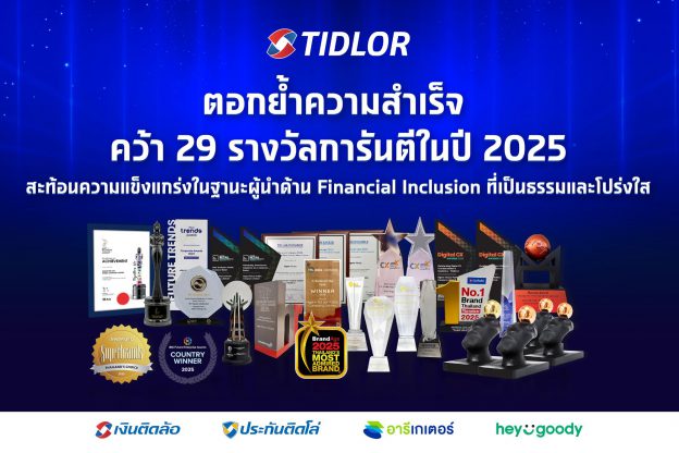 TIDLOR ตอกย้ำความสำเร็จ ด้วย 29 รางวัลการันตีในปี 2025 สะท้อนความแข็งแกร่งในฐานะผู้นำด้าน Financial Inclusion ที่เป็นธรรมและโปร่งใส