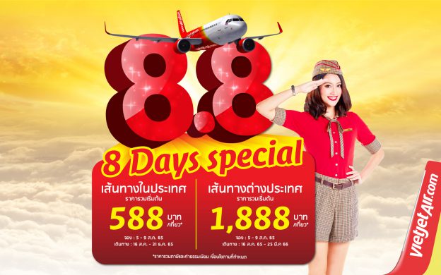 ไทยเวียตเจ็ทจัดโปรฯ ปัง “ลดกระหน่ำ 8.8 ” ตั๋วเริ่มต้น 588 บาท