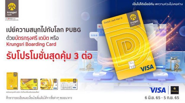 กรุงศรีชวนเปย์ความสนุกไปกับโลก PUBG ด้วยบัตรกรุงศรี เดบิต หรือ Krungsri Boarding Card พร้อมโปรโมชั่นสุดคุ้มถึง 3 ต่อ