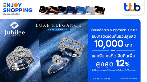 บัตรเครดิต ทีทีบี มอบสิทธิพิเศษ ช้อปเครื่องประดับที่ Jubilee รับเครดิตเงินคืนรวมสูงสุด 10,000 บาท พร้อมแลกรับเครดิตเงินคืนเพิ่มสูงสุด 12%