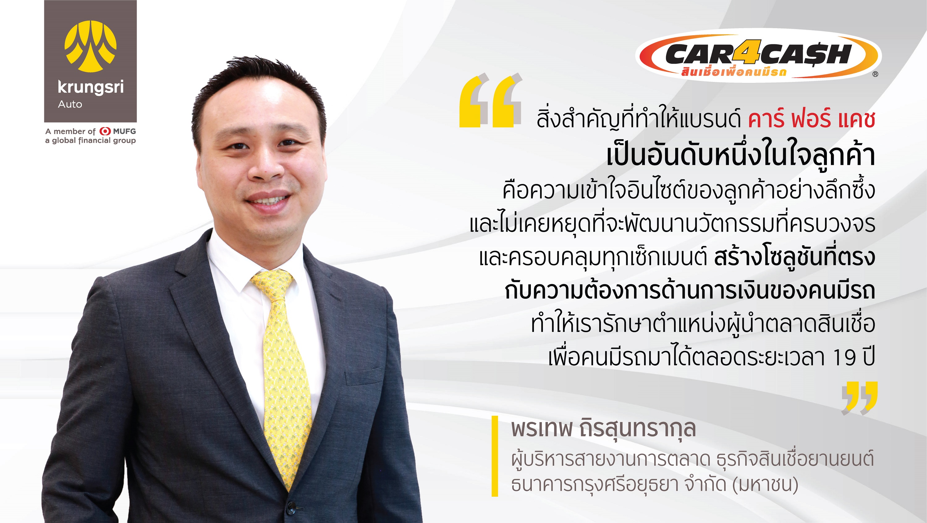 “คาร์ ฟอร์ แคช” ชูกลยุทธ์ “ผลิตภัณฑ์ต้องใช่ ใจต้องมา” ตั้งเป้าปี 65 พอร์ตทะลุ 85,000 ล้านบาท ตอกย้ำผู้นำสินเชื่อเพื่อคนมีรถ ครบทุกเซ็กเมนต์