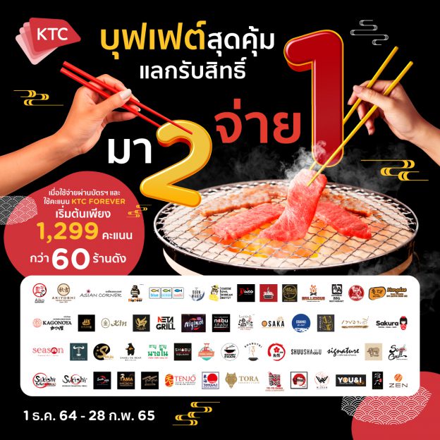 สายบุฟเฟต์มีเฮ! เคทีซีสายเปย์ให้สมาชิกมา 2 จ่าย 1 ณ ร้านบุฟเฟต์ที่ร่วมรายการ