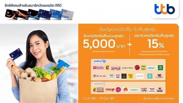 บัตรเครดิต ทีทีบี มอบสิทธิพิเศษรับเครดิตเงินคืนสุดคุ้มที่ซูเปอร์มาร์เก็ตชั้นนำ
