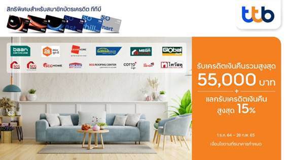 บัตรเครดิต ทีทีบี มอบสิทธิพิเศษสุดคุ้ม เติมเต็มความสุขให้คนรักบ้าน