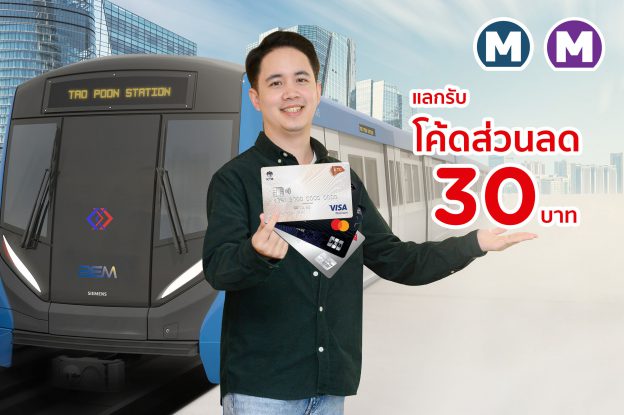 เคทีซี มอบโค้ดส่วนลด 30 บาท เมื่อเติมเงินบัตรโดยสารรถไฟฟ้าสายสีน้ำเงินและสายสีม่วง