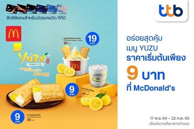 บัตรเครดิต ทีทีบี ชวนอร่อยสุดคุ้มกับ เมนูยูซุ ที่แมคโดนัลด์