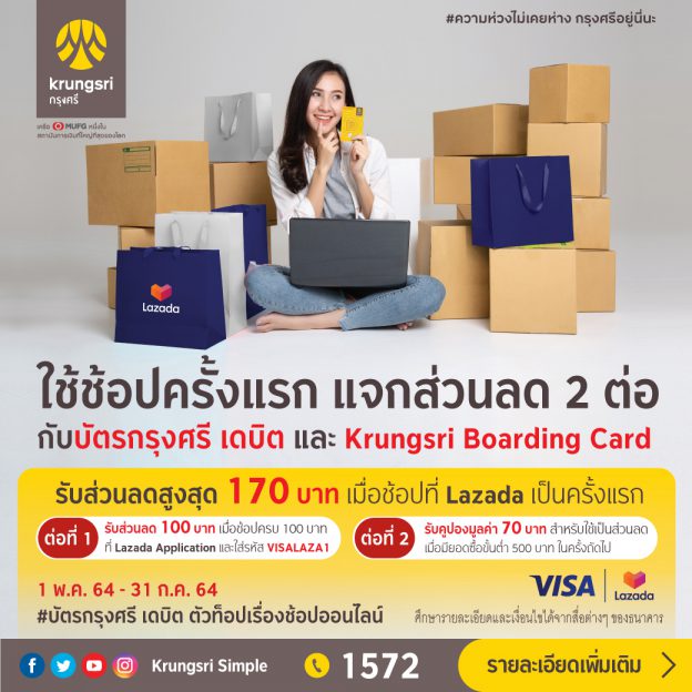 กรุงศรี แจกส่วนลดช้อปออนไลน์ 2 ต่อ เมื่อช้อปครั้งแรกที่ Lazada