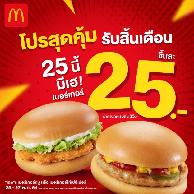 แมคโดนัลด์ส่งโปรสุดคุ้มรับสิ้นเดือน วันที่ 25 นี้ มีเฮ! กับเบอร์เกอร์สุดคุ้ม 25 บาท!