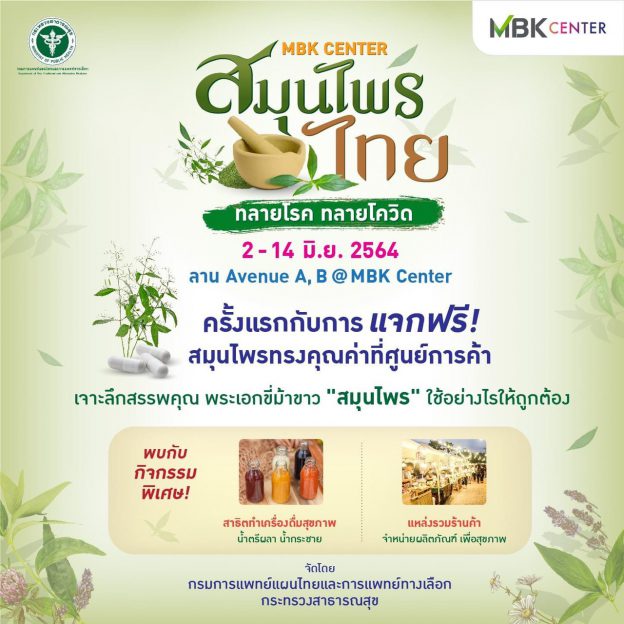 เอ็ม บี เค เซ็นเตอร์ ร่วมกับ กรมการแพทย์แผนไทยและการแพทย์ทางเลือก จัดงาน สมุนไพรทลายโรค ทลายโควิด เจาะลึกสรรพคุณสมุนไพร แจกฟรี! สมุนไพรทรงคุณค่า
