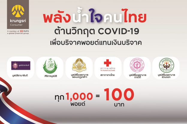 กรุงศรี คอนซูมเมอร์ จัดกิจกรรม “พลังน้ำใจคนไทย” ต้านวิกฤตโควิด-19 ชวนสมาชิกบริจาคคะแนนสมทบทุนให้กับโรงพยาบาล