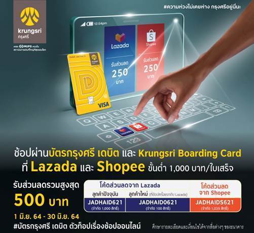 กรุงศรี แจกโค้ดลดสุดคุ้ม ช้อปออนไลน์ที่ Lazada และ Shopee ลดรวมสูงสุด 500 บาท