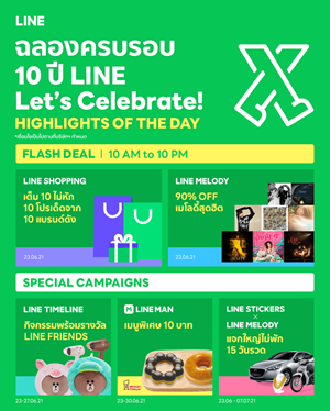 LINE ฉลองครบ 10 ปี อัดแน่นพาเหรดโปรฯเด็ดสุดคุ้ม จาก 5 บริการสุดฮอต ร่วมลุ้นรางวัลรวมมูลค่ากว่าล้านบาท เริ่ม 23 มิ.ย. นี้
