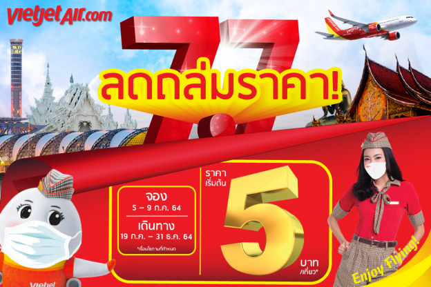 ฉลองเทศกาลลดกระหน่ำ 7 เดือน 7 กับไทยเวียตเจ็ท ตั๋วโปรฯ เริ่มต้นเพียง 5 บาท