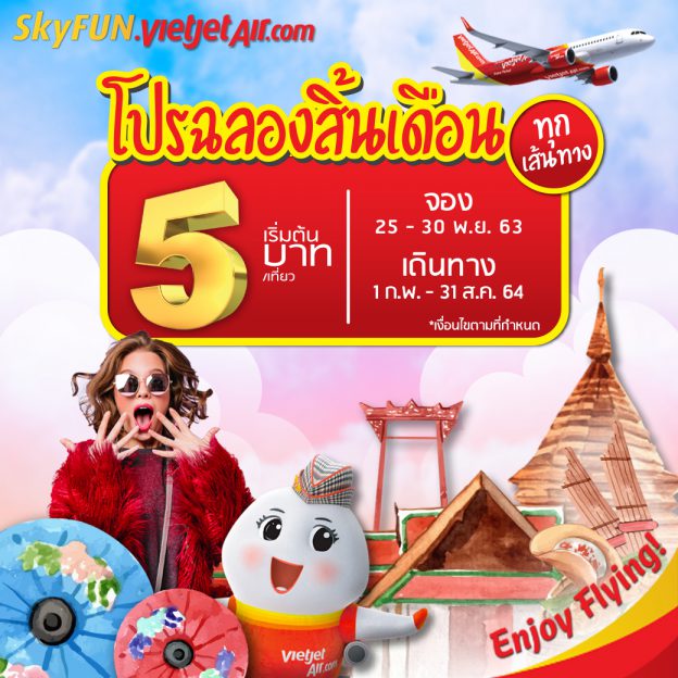 เวียตเจ็ทฉลองสิ้นเดือน จัดโปรฯตั๋วเริ่มต้น 5 บาท