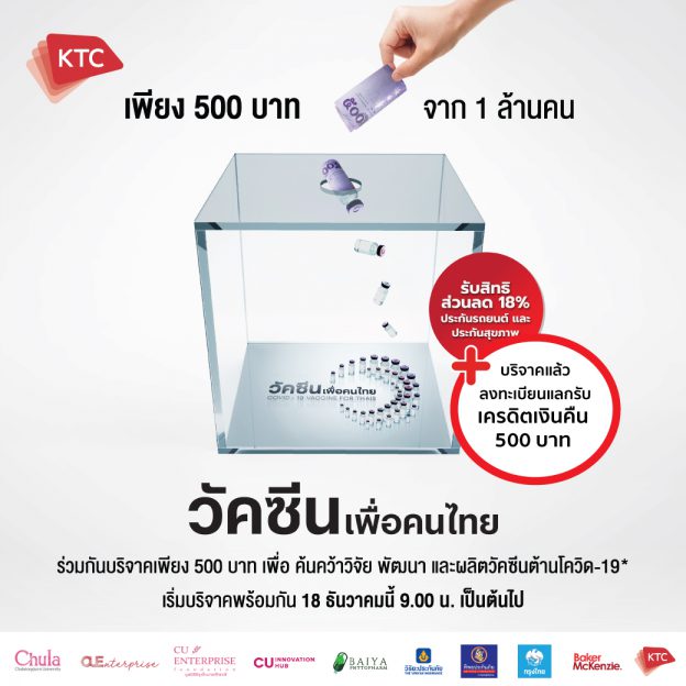 เคทีซีชวนคนไทยร่วมบริจาคเข้าโครงการ “วัคซีนเพื่อคนไทย” หนุนนักวิจัยไทยค้นคว้าวัคซีนโควิด-19