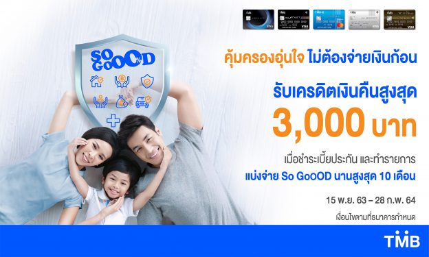 บัตรเครดิตทีเอ็มบี ให้แบ่งชำระเบี้ยประกันได้นานสูงสุด 10 เดือน พร้อมรับเครดิตเงินคืนสูงสุด 3,000 บาท