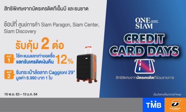 บัตรเครดิตทีเอ็มบีและธนชาต ชวนช้อปเฉลิมฉลองเทศกาลแห่งความสุข รับคุ้ม 2 ต่อ แลกรับเครดิตเงินคืน 12% พร้อมรับกระเป๋าล้อลากสุดหรู ##