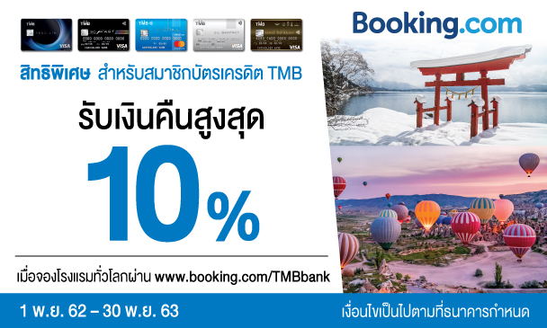 บัตรเครดิต TMB ร่วมกับ Booking.com ให้จองโรงแรมทั่วโลกพร้อมรับเงินคืนสูงสุด 10%