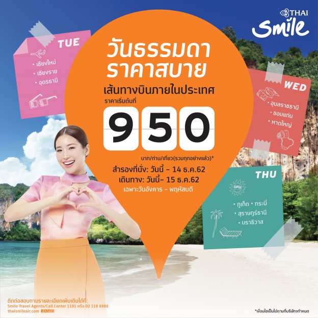 ไทยสมายล์ … ชวนบินลัดฟ้าทั่วไทยกับโปรโมชั่น Smile Weekday วันธรรมดา ราคาสบาย เริ่มต้น 950 บาท
