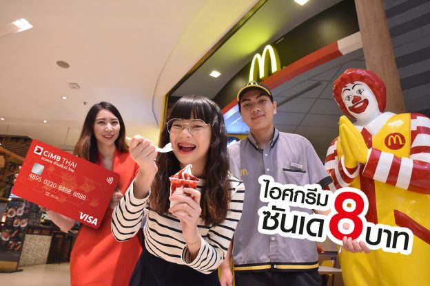 ใช้บัตรเดบิต ธนาคาร ซีไอเอ็มบี ไทย ซื้อไอศกรีม ซันเด เพียง 8 บาท วันนี้ – 31 ม.ค. 63 ที่ แมคโดนัลด์