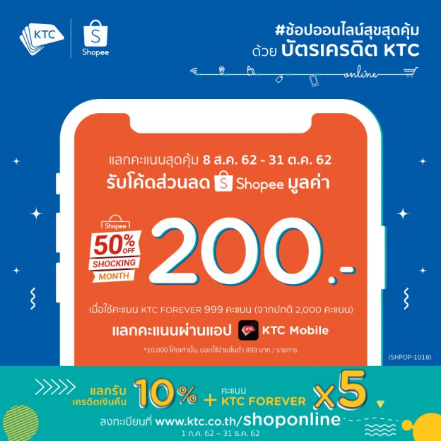 เคทีซีเปิดใช้คะแนนแลกโค้ดส่วนลดช้อปปี้สุดคุ้ม ผ่านแอปฯ “KTC Mobile” ดีเดย์วันที่ 8 เดือน 8