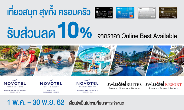 บัตรเครดิตทีเอ็มบี ชวนครอบครัวมาคลายร้อน รับส่วนลด 10% เมื่อจองห้องพักตั้งแต่ 2 คืนขึ้นไป ณ โรงแรมที่ร่วมรายการ ##